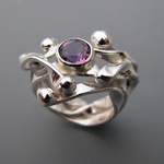 2009Zilveren ring met amethyst. Serie: Gras.
